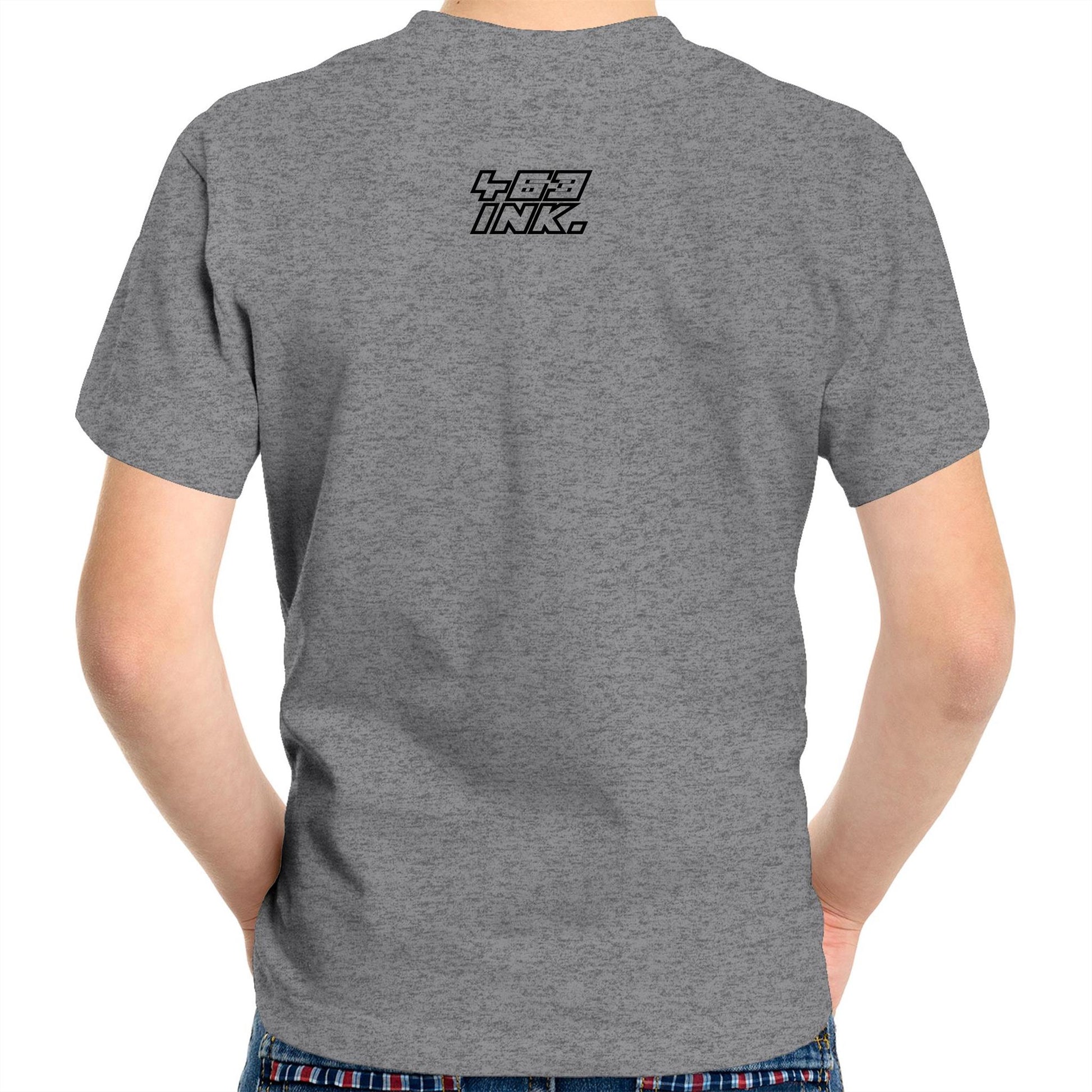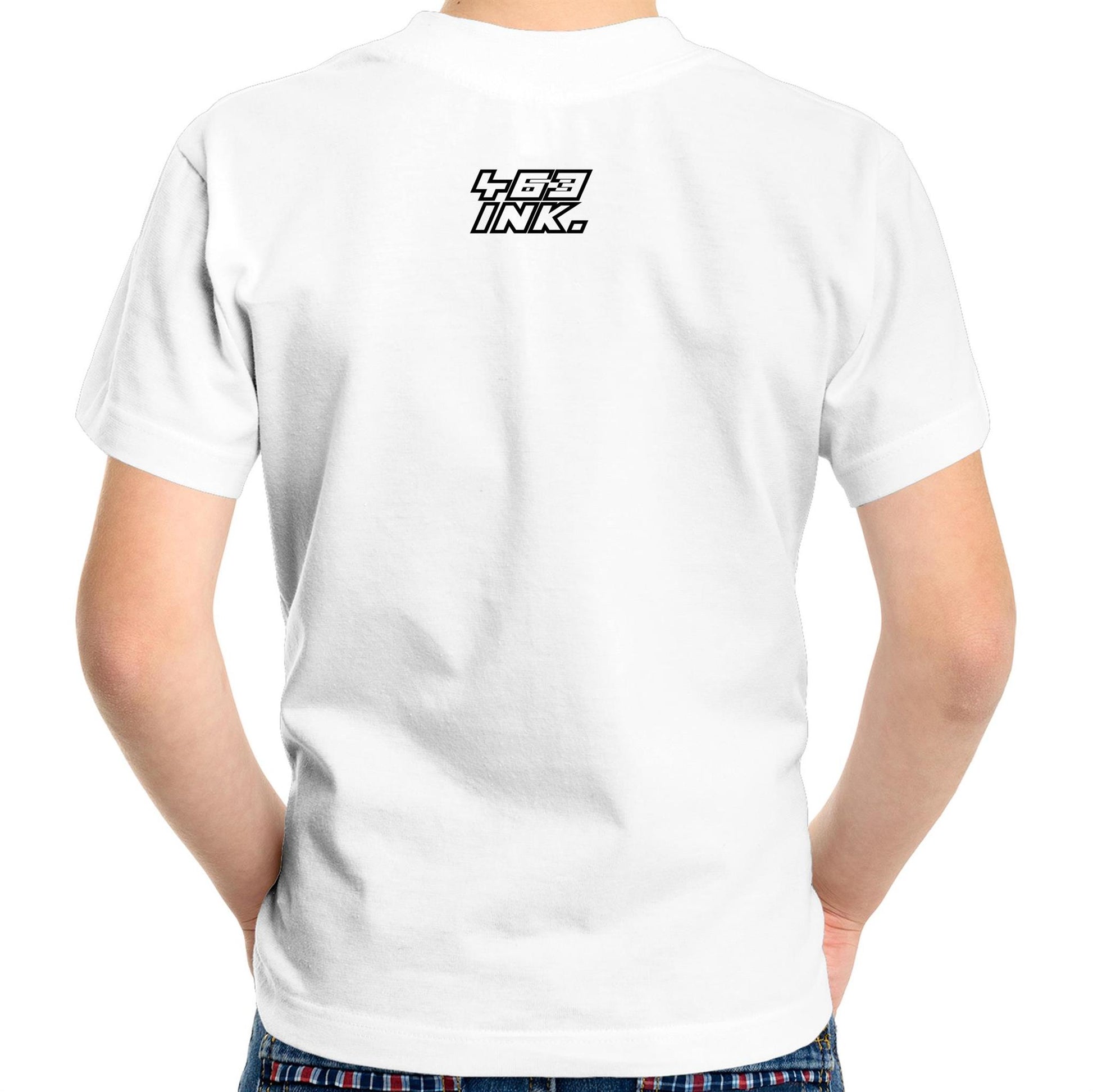 - Body Length: Measure from the top of the shoulder to the bottom of the t-shirt.