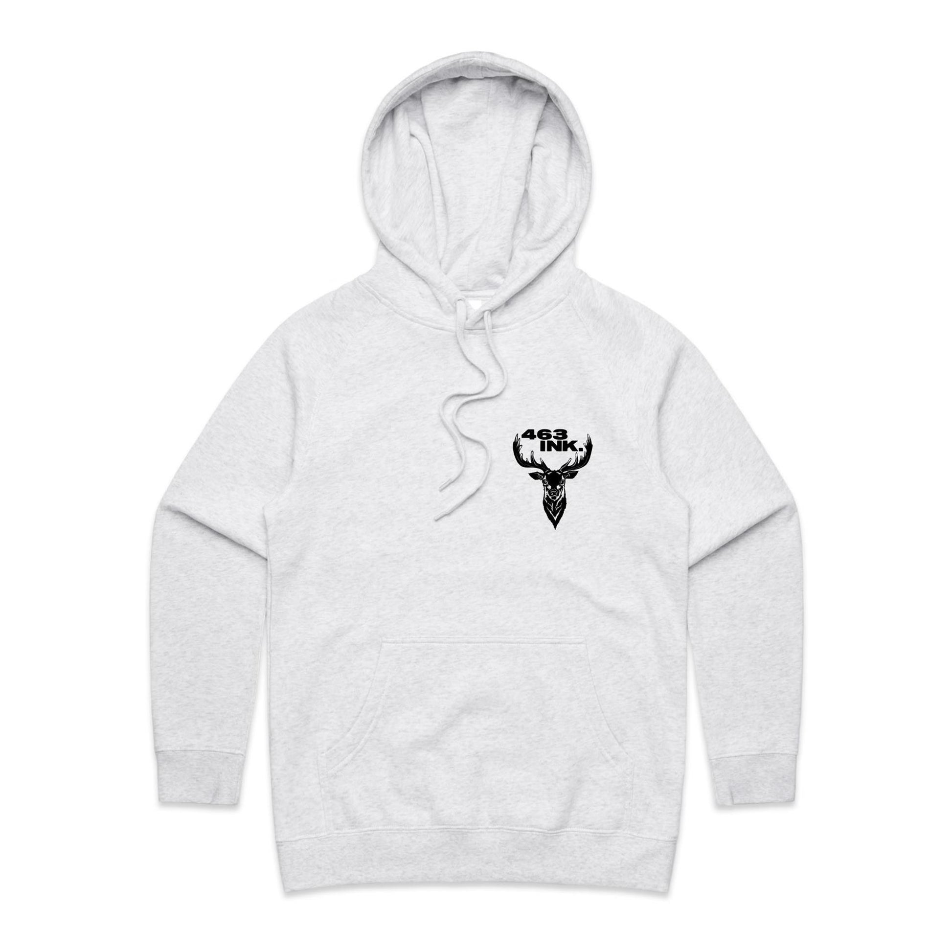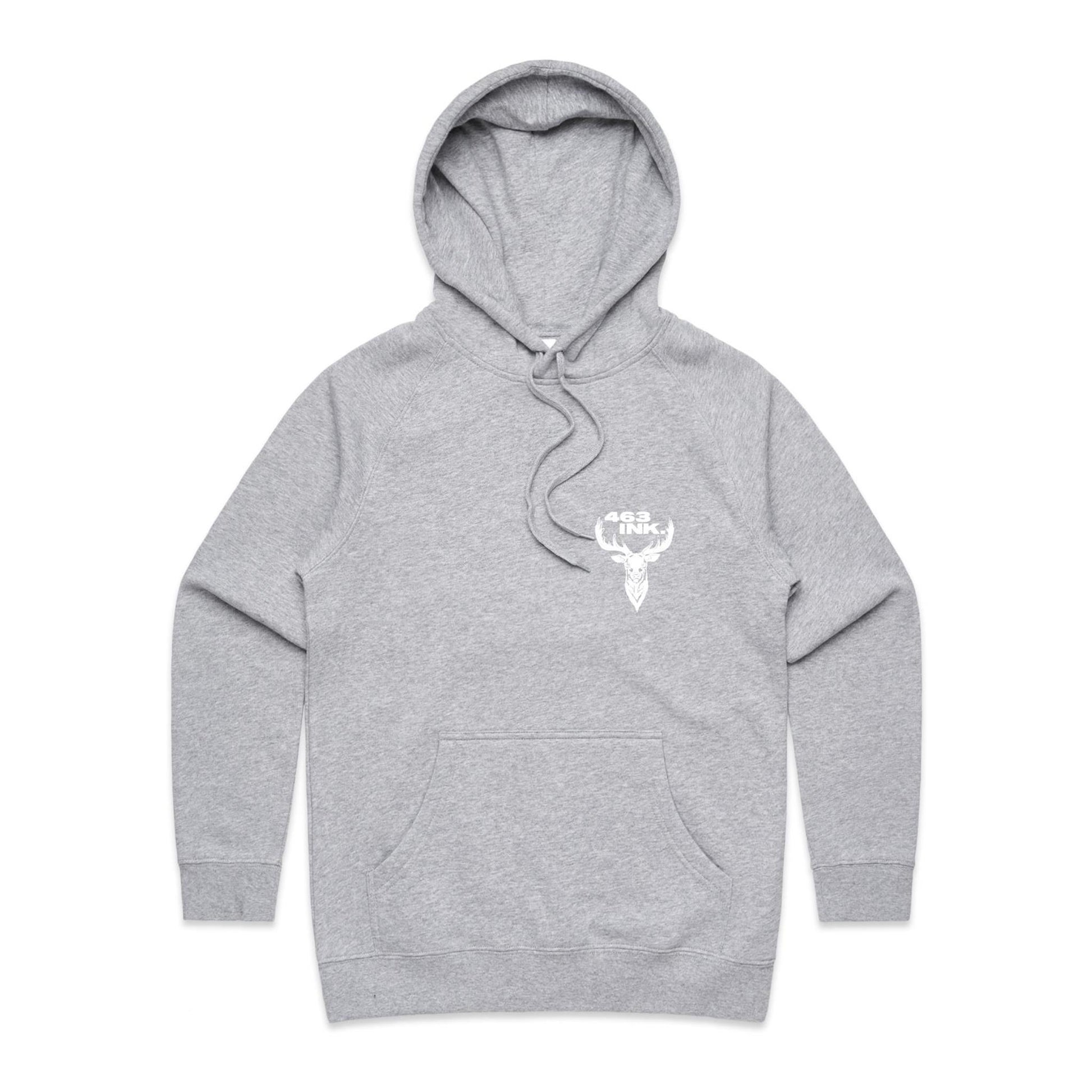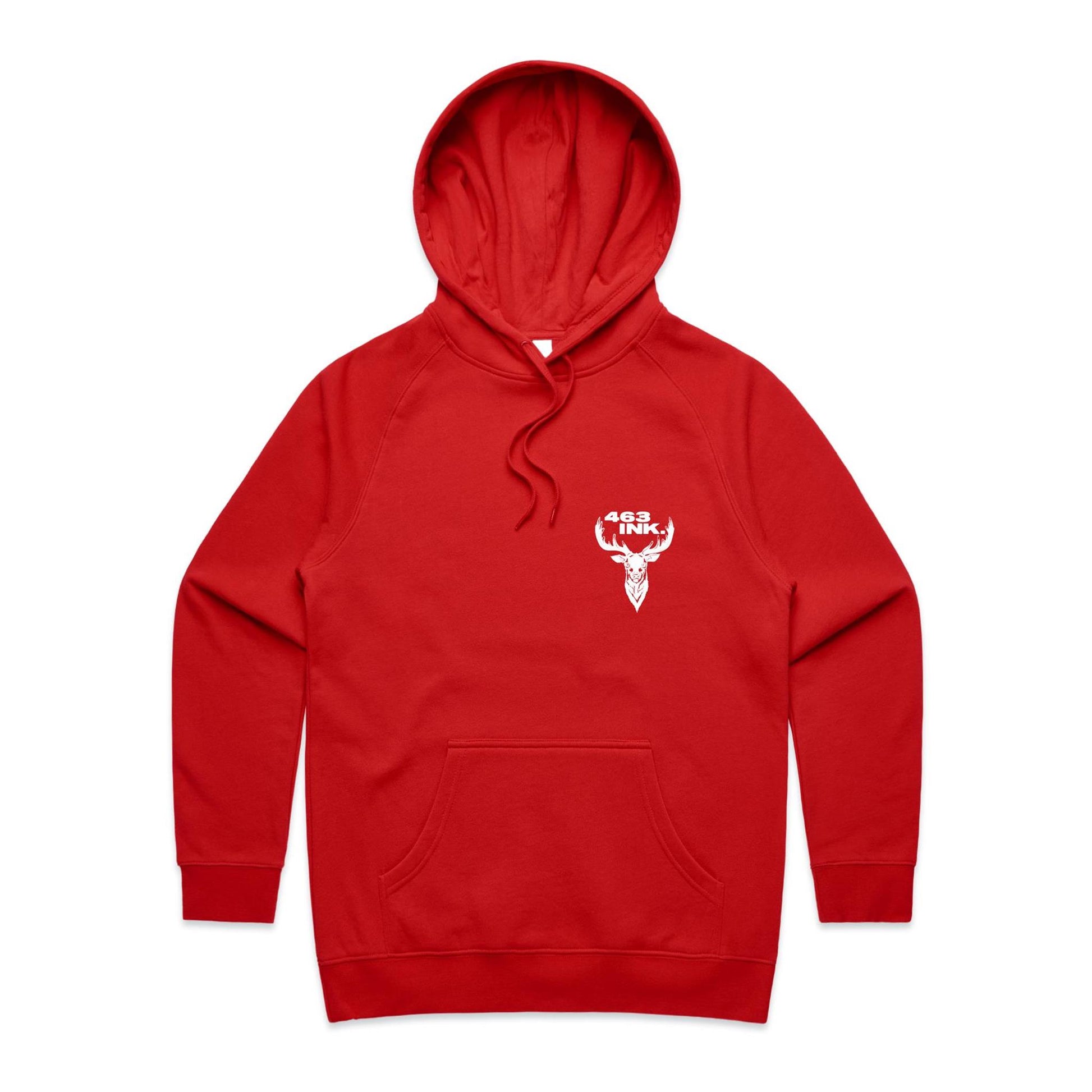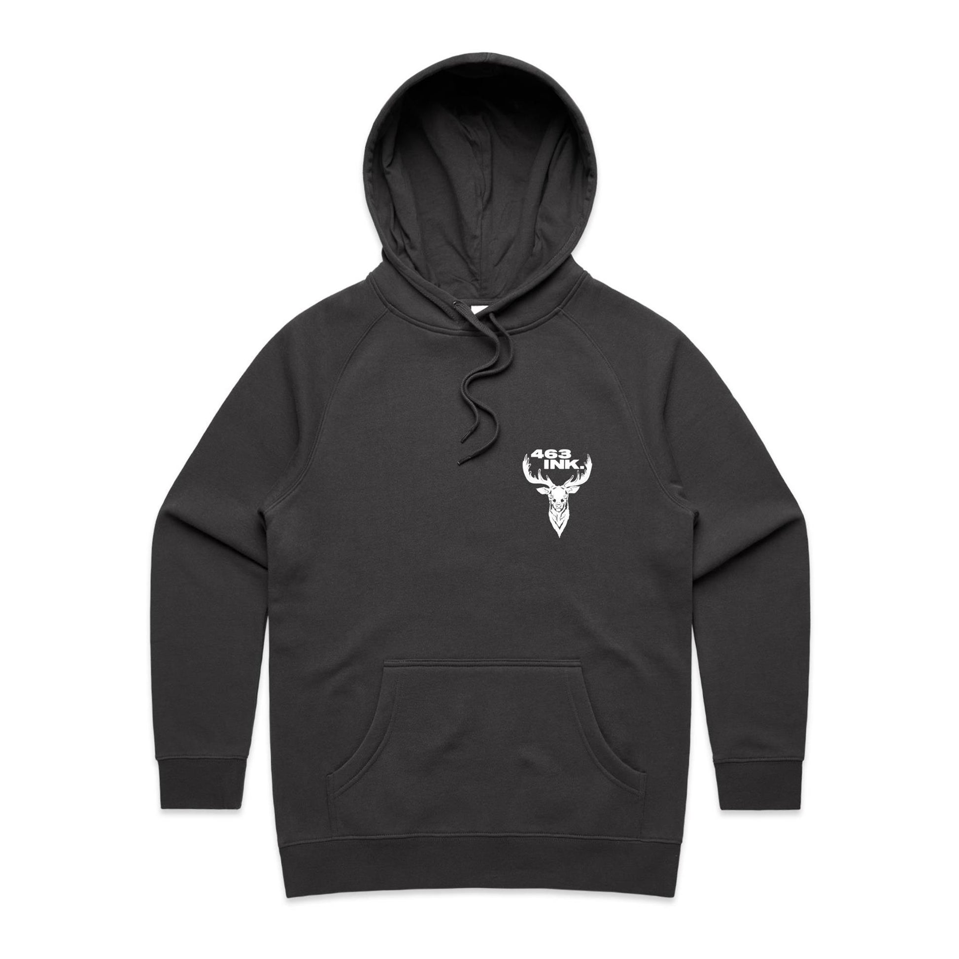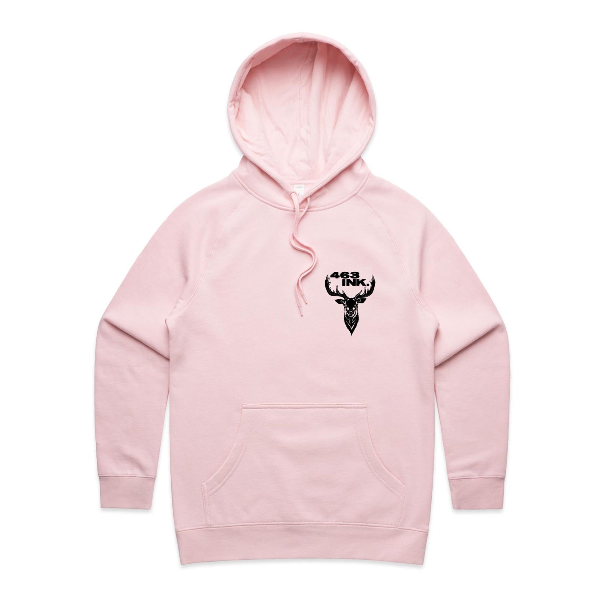 Pullover hood, raglan sleeves, kangaroo pocket, lined hood, tonal drawcord